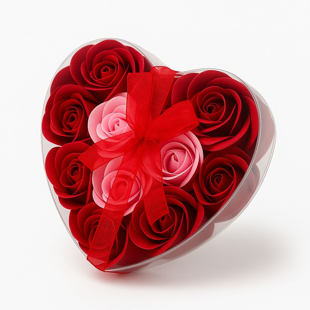 Transforma orice moment intr-o declaratie memorabila de iubire cu aceasta cutie eleganta in forma de inima, plina cu 18 de trandafiri din sapun in nuante vibrante de rosu pasional si roz delicat. Fiecare floare este realizata cu o textura fina, un design realist si o eleganta care impresioneaza instant, oferind un impact vizual spectaculos.