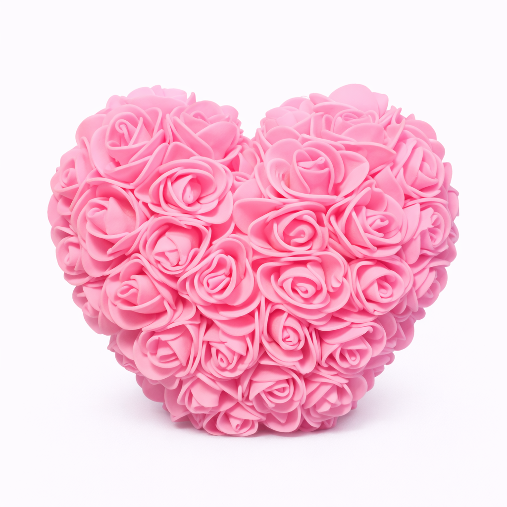 Inima din Trandafiri 15x15cm cu Flori de Spuma, in Cutie Transparenta 15cm - roz