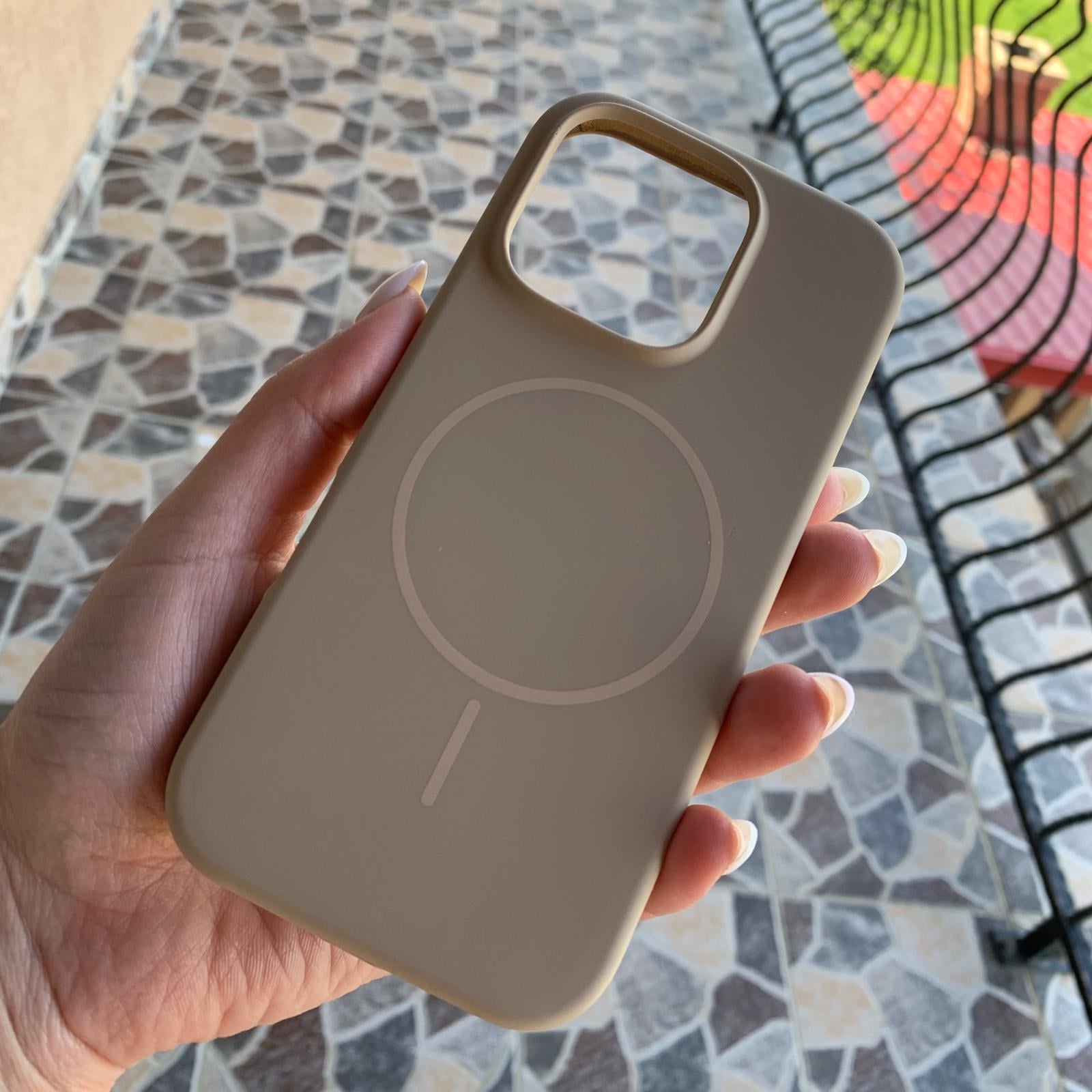 Husa Iphone 15 PRO cu MagSafe - Silicon, interior catifelat, design Minimalist, Maro cappuccino Apple