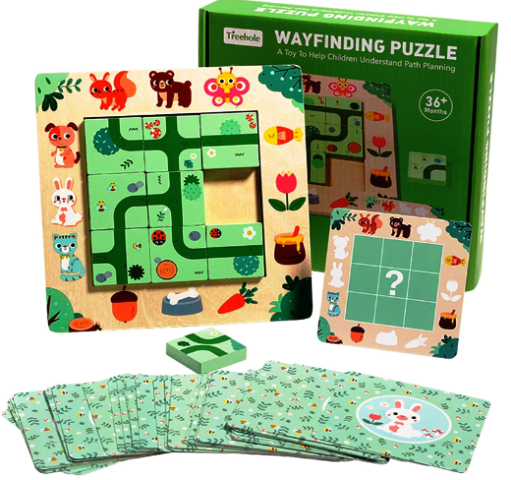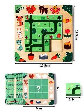 Copiii vor poziționa piesele din lemn pe baza de joc, urmărind modelele de pe carduri și găsind soluția corectă. Activitatea contribuie la îmbunătățirea coordonării mână–ochi, dezvoltarea atenției și a concentrării, într-un mod distractiv și interactiv.